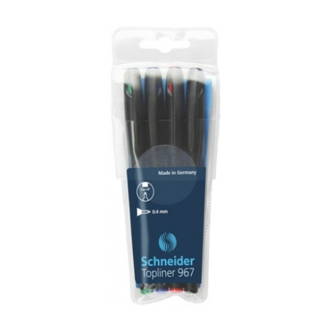 TŰFILC KÉSZLET, 0,4 MM, SCHNEIDER TOPLINER 967, 6 KÜLÖNBÖZŐ SZÍN Írásra, rajzolásra alkalmas általános használatú, vékony írásvastagságú tűfilc, vízbázisú festékkel töltve. Írásképe száradás után vízálló. Vonalvastagság: 0,4 mm. Katalóguskód: 35437