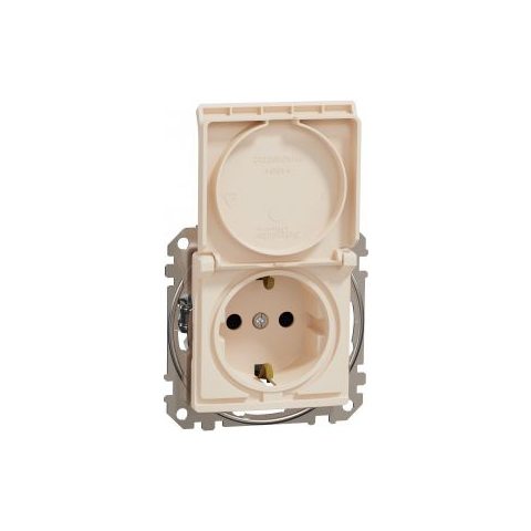 1 kép SCHNEIDER ÚJ SEDNA 2P+F csatlakozóaljzat biztonsági zsaluval, csapófedeles, rugós bekötés, 16A, bézs