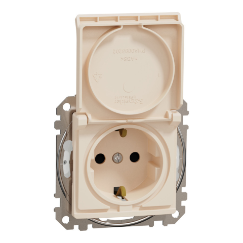 1 kép SCHNEIDER ÚJ SEDNA 2P+F csatlakozóaljzat biztonsági zsaluval, csapófedeles, rugós bekötés, IP44, bézs