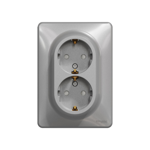1 kép SCHNEIDER Új Sedna 2x2P+F csatlakozóaljzat biztonsági zsaluval csavaros bekötés 16A alu