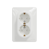 Új Sedna 2x2P+F csatlakozóaljzat biztonsági zsaluval, csavaros bekötés, 16A, fehér színben.