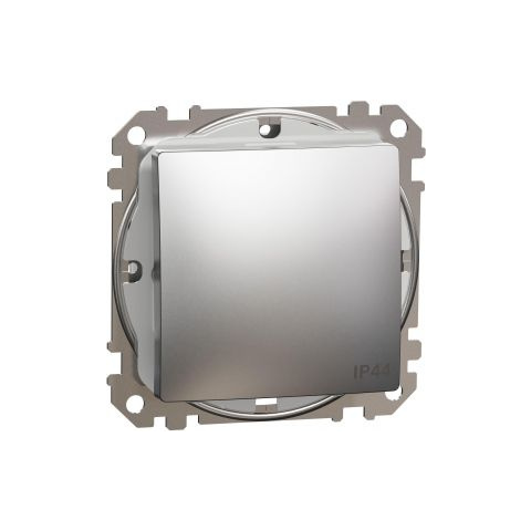 1 kép SCHNEIDER ÚJ SEDNA Egypólusú kapcsoló, rugós bekötés, 10AX, IP44, szálcsiszolt ezüst