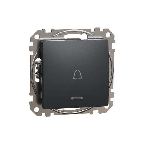 1 kép SCHNEIDER ÚJ SEDNA Egypólusú nyomó, kék jelzőfénnyel, csengőjellel, rugós bekötés, 10A, antracit
