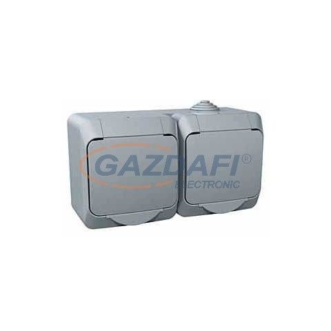 1 kép SCHNEIDER WDE000623 CEDAR PLUS 2x2P+F csatlakozóaljzat, gyermekvédelemmel, csapófedéllel, IP44, szürke