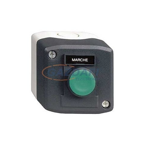 Harmony XALD tokozott nyomógomb, 1NO, 1 zöld nyomógomb, MARCHE felirati címke
