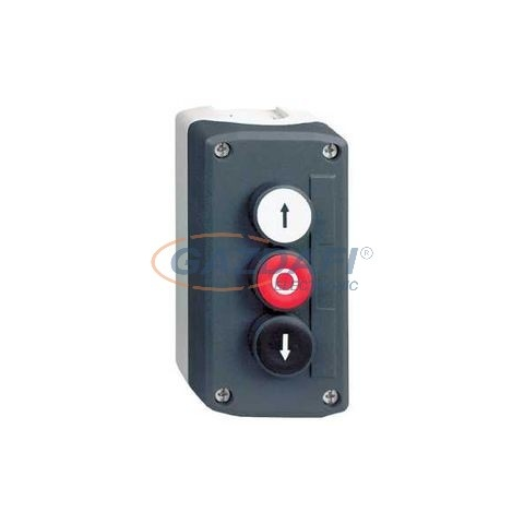 Harmony XALD tokozott nyomógomb, 1 fehér - 1 kiálló piros - 1 fekete, 2NO+1NC, fel és le nyíl, O feliratok