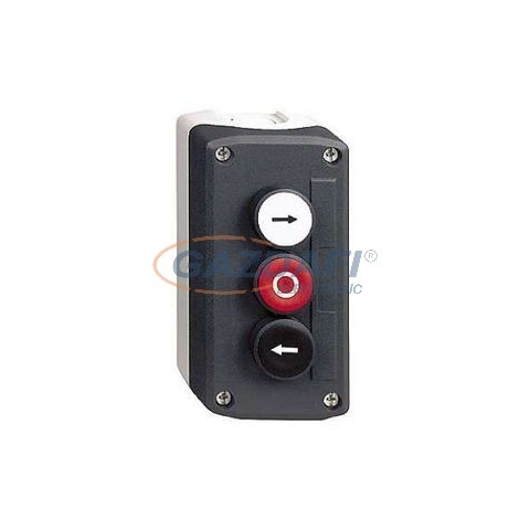 Harmony XALD tokozott nyomógomb, 1 fehér - 1 piros - 1 fekete, 2NO+1NC, jobb és bal nyíl, O feliratok