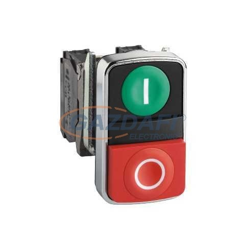 Harmony komplett fém kettősfejű nyomógomb, Ø22, 1NO+1NC, zöld I, piros kiálló O