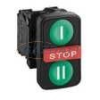 Harmony komplett műanyag kettősfejű nyomógomb, Ø22, visszatérő, 2NO+1NC, 2 zöld I/II + 1 piros kiálló STOP gomb