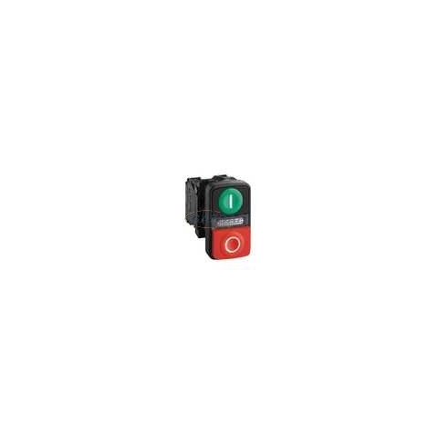 Harmony komplett műanyag kettősfejű nyomógomb, Ø22, 1NO+1NC, zöld I + piros O gomb + LED, 24VAC/DC