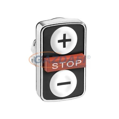 Harmony fém kettősfejű nyomógomb fej, Ø22, visszatérő, 1-1 fehér +/- nyomógomb, piros kiemelkedő STOP gomb
