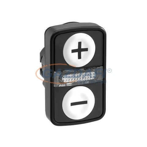 Harmony műanyag világító kettősfejű nyomógomb fej, Ø22, visszatérő, 1-1 fehér +/- nyomógomb