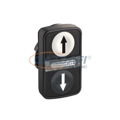 Harmony műanyag világító kettősfejű nyomógomb fej, Ø22, visszatérő, 1-1 fehér/fekete fel/le nyíl nyomógomb