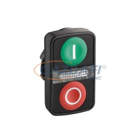 Harmony műanyag világító kettősfejű nyomógomb fej, Ø22, visszatérő, 1 zöld I, 1 piros O nyomógomb