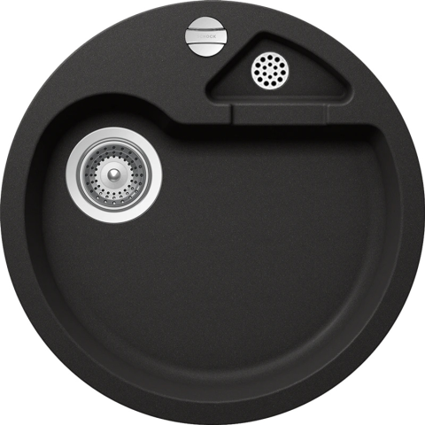 1 kép Schock Classic R-100 Cristalite Nero egymedencés kerek gránit mosogató, szifonnal, fekete, beépíthető
