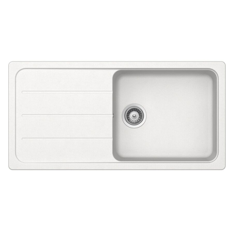 1 kép Schock Formhaus D-100L Cristalite Alpina gránit mosogatótálca, szifonnal, fehér, beépíthető