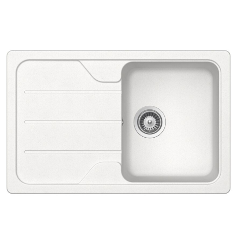 1 kép Schock Formhaus D-100S Cristalite Alpina gránit mosogatótálca, szifonnal, fehér, beépíthető