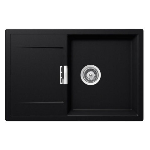 1 kép Schock Mono D-100 Cristadur Puro gránit mosogatótálca, szifonnal, fekete, beépíthető