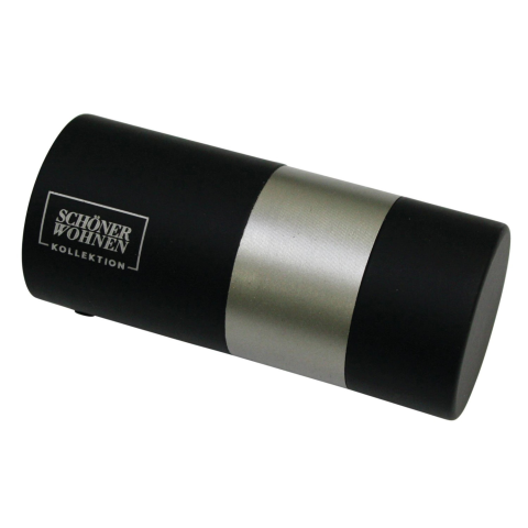A Schöner Wohnen kollekció matt-ezüst ellengyűrűvel rendelkező, matt fekete, fém végzáró hengere tökéletes lezárást biztosít a 20 mm átmérőjű Leon függönyrúdhoz. A kiváló minőségű megjelenést a Schöner Wohnen kollekció jobb oldali végzárón található lézergravírozás teszi teljessé, így ügyesen jeleníti meg függönyeit az ablakon. Ha nem szeretné, hogy a márkajelzés jól látható legyen, akkor a fal felé fordíthatja, amely így eltűnik. A csomag 2