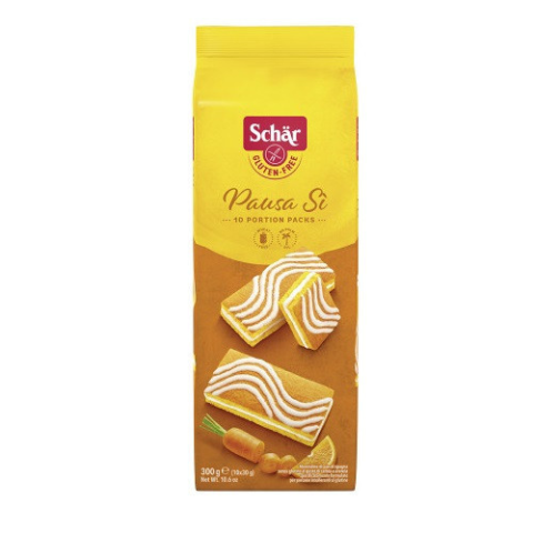 Schär pausa sí (piú) piskótaszelet tejkrémmel töltve 30 g Gluténmentes piskóta sárgarépa és narancs ízesítéssel. Összetevők: Cukor, tojás, glükóz-fruktóz szirup, növényi olajok és zsírok változó arányban, (magas olajsavtartalmú napraforgó étolaj,kókus