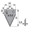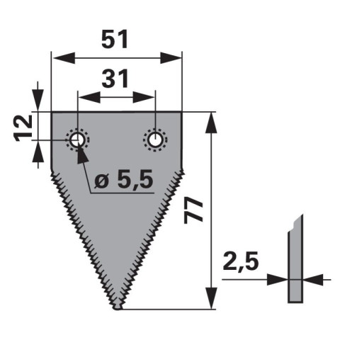 Kivitel: felső fogazott Szélesség (b): 51 mm Magasság (h): 77 mm Furattáv (la): 31 mm Furattáv 2 (la2): 12 mm Lyukátmérő: 5,5 mm Süllyesztett szegecsfurat: alul Vastagság (s): 2,5 mm Kivitel: felső fogazott Szélesség (b): 51 mm Magasság (h): 77 mm Fura