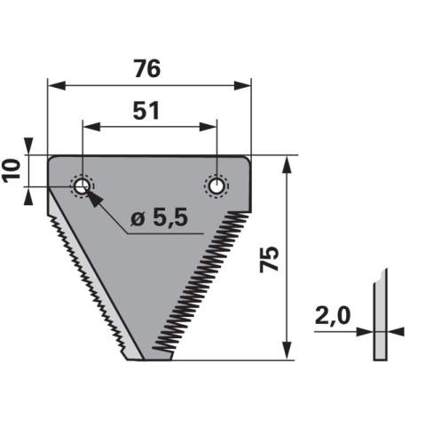 Kivitel: fogazott / felül fogazott Szélesség (b): 76 mm Magasság (h): 75 mm Furattáv (la): 51 mm Furattáv 2 (la2): 10 mm Lyukátmérő: 5,5 mm Süllyesztett szegecsfurat: alul Vastagság (s): 2 mm Kivitel: fogazott / felül fogazott Szélesség (b): 76 mm Maga
