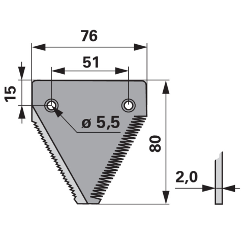 Kivitel: fogazott / felül fogazott Szélesség (b): 76 mm Magasság (h): 80 mm Furattáv (la): 51 mm Furattáv 2 (la2): 15 mm Lyukátmérő: 5,5 mm Süllyesztett szegecsfurat: felül Vastagság (s): 2 mm Kivitel: fogazott / felül fogazott Szélesség (b): 76 mm Mag