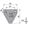 Kivitel: fogazott Szélesség (b): 76 mm Magasság (h): 75 mm Furattáv (la): 51 mm Furattáv 2 (la2): 10 mm Lyukátmérő: 5,5 mm Lyukátmérő 2: 10 mm Süllyesztett szegecsfurat: nem Vastagság (s): 2 mm Kivitel: fogazott Szélesség (b): 76 mm Magasság (h): 75 mm