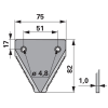 Kivitel: gezahnt Szélesség (b): 75 mm Magasság (h): 82 mm Furattáv (la): 51 mm Furattáv 2 (la2): 17 mm Lyukátmérő: 4,8 mm Süllyesztett szegecsfurat: felül Vastagság (s): 1 mm Kivitel: gezahnt Szélesség (b): 75 mm Magasság (h): 82 mm Furattáv (la): 51 m