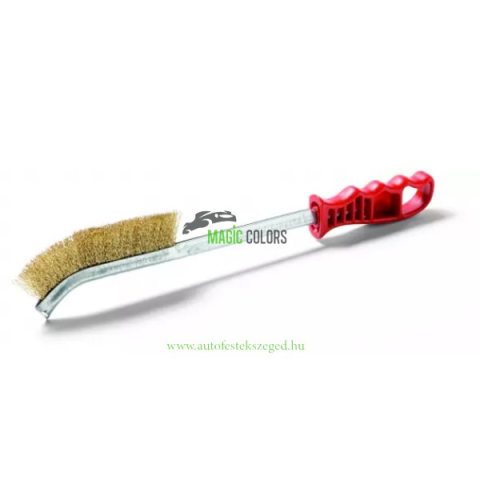 Hajlított, hosszú, speciális drótkefe – Rezezett, hullámos acéldrótból készült, műanyag nyéllel a kényelmes fogás érdekében. Ideális különböző felületek tisztítására és rozsdamentesítésre. Hajlított, hosszú, speciális drótkefe – Rezezett, hullámos acél