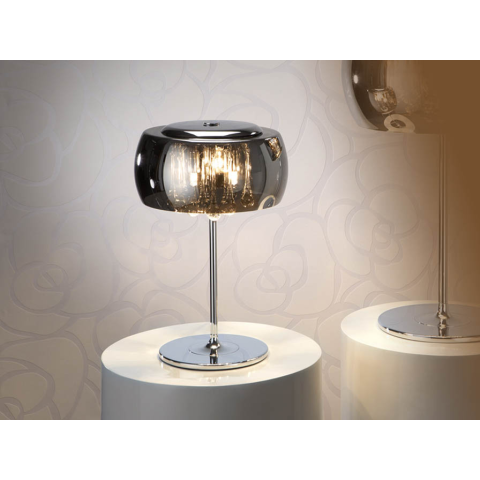 Fémből készült asztali lámpa. Krómozott kivitel. Kristály tükrök árnyékoló. Üveg belső cseppek murano stílusban...