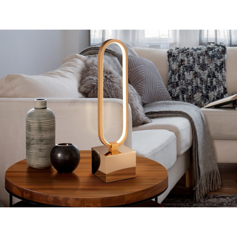 1 lámpás LED asztali lámpa, szálcsiszolt alumíniumból és matt festett fém talpból, rózsaszín arany kivitelben. Opál szilikon diffúzor. 10,5 W LED, 940 lm, 3000 K...