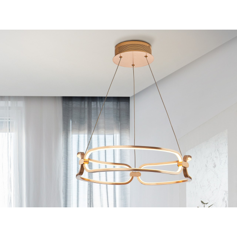 Kisméretű LED lámpa, szálcsiszolt alumíniumból, rózsa arany kivitelben. Opál szilikon diffúzorok. Állítható hossza. 37W LED, 3330 lm, 3000 K. Dimmelhető..