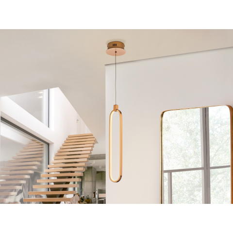 1 fényes LED lámpa, szálcsiszolt alumíniumból, rózsaszín arany kivitelben. Opál szilikon diffúzorok. Állítható hossza. 13 W LED, 1170 lm, 3000 K...