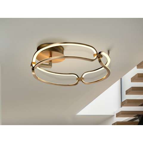 Kis mennyezeti lámpa, LED, szálcsiszolt alumíniumból, rózsaszín arany kivitelben. Opál szilikon diffúzorok. 37W LED, 3330 lm, 3000 K. Dimmelhető...