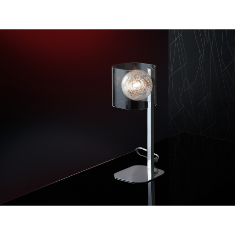 Asztali lámpa 1 db fémből, króm kivitelben. Öntött üvegbúrák, üvegszálakkal díszítve...