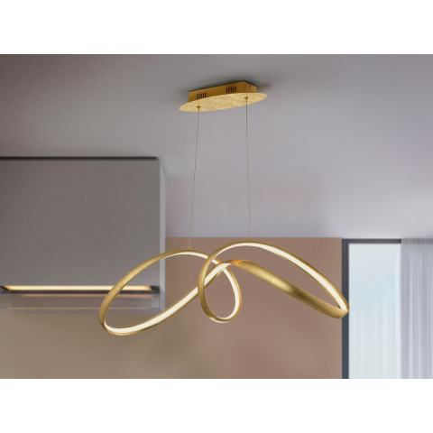 Acélból és alumíniumból készült lámpa. ARANYLEVELES kivitel. Opál szilikon diffúzor. Állítható magasságú. LED világítás 32 W. 1800 lm. 3000 K...
