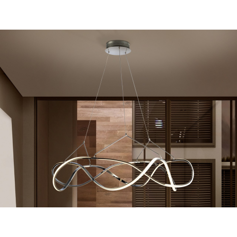 LED lámpa alumíniumból, króm kivitelben. Opál szilikon diffúzorok. Állítható magasságú. 63W, 5670 lm. 3000 K. Dimmelhető. Távirányító mellékelve...