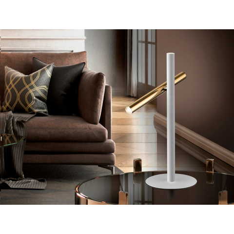 LED asztali lámpa 2 lámpából. Fémből készült, fényes arany és matt fehér kivitelben. Opál akril diffúzor. 10 W LED, 900 lm, 3000 K...