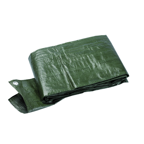 Takaró - védőponyva fém gyűrűkkel, olívazöld színben, megerősített szegéllyel.