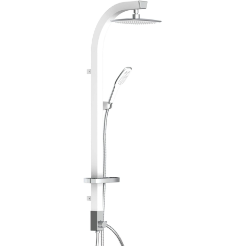 A fehér színű Madagaskar fej feletti zuhanykészlet különösen feltűnő, hangsúlyos szerepet kap a fekete-fehér kontrasztot használó, modern fürdőszobákban. Az alumíniumból készült zuhanyrúd végig fehér színű. Az olyan részletek, mint az átállító, a szappantartó és a díszburkolatok krómozottak, és ezek teszik teljessé a képet. A fej feletti és a kézi zuhanyfej lágy esősugárral kényeztet. A mellékelt bekötőcsövek krómozott rozsdamentes acélból kész