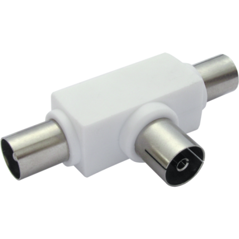 Egyéb 1: Antenna csatlakozó elosztó, fehér műanyag ház, "T" kialakítás, 1 antenna, 2 TV csatlakoztatás, 75 Ohm