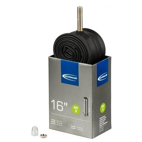Kerékpár belső - 16" kerékátmérőhöz, AV autós szelep, szelep hossza 40 mm, gyerek kerékhez, tömege 115 g A minőségi belső gumi a zökkenőmentes és gondtalan kerékpártúra elengedhetetlen kelléke. A sokat bizonyított Schwalbe márka 16" méretű belső gumija a legjobb minőségű kerékpár kiegész