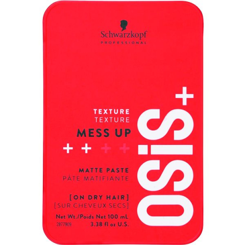 Hajformázó paszta - professzionális kozmetikum és vegán kozmetikum, mattító, erősítő és fixáló hatás, minden hajtípusra, közepes fixálás, Osis sorozat, 100 ml-es kiszerelésben A Schwarzkopf Professional Osis+ Mess Up matt hatású hajformázó paszta egy kiváló minőségű, 100 ml-es hajformázó termék közepes erősségű tartással, amely kiemeli a frizura struktúráját, miközben nem g