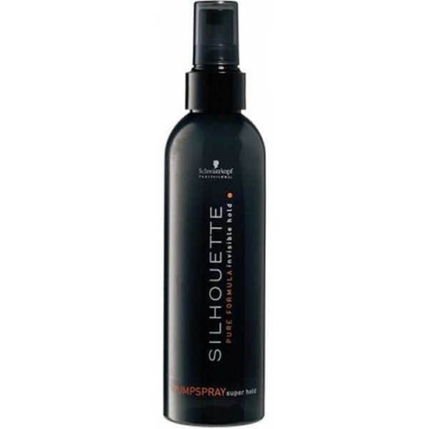 Hajspray - professzionális kozmetikum, fényesítő hatás, festett, vékony szálú, zsíros, normál, sérült, száraz, hullámos, göndör, nehezen kezelhető, töredezett, öregedő és őszülő hajra, külső hatások elleni védelem, erős fixálás, 200 ml-es kiszerelésben A Schwarzkopf Silhouette Super Hold Pumpspray hajlakk egy luxus minőségű, extra erős tartást biztosító termék, amely minden hajtípusra alkalmas. A hajlakk speciális Silhouette formulát tartalmaz, ame