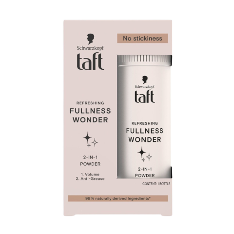 Taft Fullness Wonder hajformázó por minden hajtípusra. Az extra dús hatásért & frissességért. Fedezd fel a Taft Fullness Wonder hajformázó por erejét, amely tökéletes megoldás a dúsabb, teltebb frizurák kialakításához anélkül, hogy elnehezítené a hajat