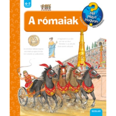 "A népszerű Mit? Miért? Hogyan? gyermekkönyvsorozat 43. kötetét lapozgatva az ókori rómaiakkal ismerkedhetnek meg az óvodások, kisiskolások. Kik azok a légionáriusok és a gladiátorok? Hogyan harcoltak a római katonák? Milyen volt egy ókori közfürdő? Mi volt a rómaiak kedvenc időtöltése? Milyen ételeket ettek, és hol éltek Róma lakosai?