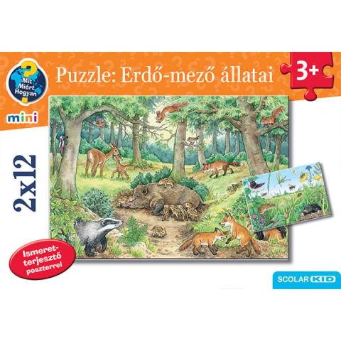 A 2x12, nagy alakú puzzle-darabot tartalmazó, 3 év feletti gyerekeknek javasolt kirakós az erdők-mezők állatlakóit mutatja be. A kiváló minőségű puzzle-k kirakását tájékoztató képek segítik, a gyerekek tudásának fejlesztését pedig egy nagy méretű ismeretterjesztő poszter támogatja, melyen bővebb információk találhatók az erdők-mezők világáról.