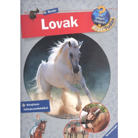 A Ravensburger Mit? Miért? Hogyan? Foglalkoztató sorozatának e kötete a lovakkal ismerteti meg az apróságokat. Milyen különbségek vannak a lovak között? Mire használjuk a lovakat? Hogyan lehet megtanulni lovagolni? Milyen felszerelésre van szüksége a lónak és a lovasnak? Hogyan kell ápolni a lovakat? Színezd ki!, Fejtsd meg! és Készítsd el! a feladatokat megoldva a gyerekek megkapják a választ a kérdésekre, és még a lasszódobást is megtanulhatják..