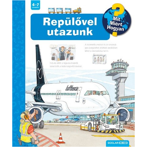 A Mit? Miért? Hogyan? sorozat teljesen megújult 35. kötetéből az óvodások és a kisiskolások megtudhatják, mi történik a repülőtéren, hogyan néz ki egy repülőtér, mi történik beszálláskor és landoláskor, miért nem esik a repülő az égből, hogyan irányítja a pilóta a gépet, milyen modern légi járművek vannak…